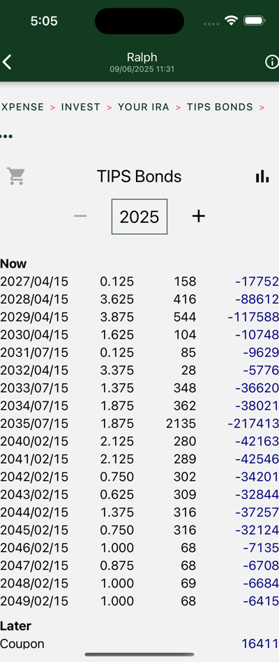 Day zero activities include setting up your TIPS bond ladder. Listed here are the purchases for your IRA account. Your job: