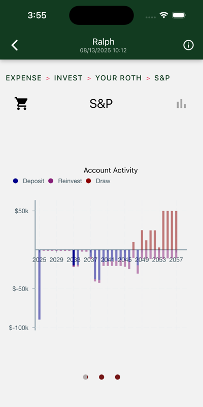 In later years, you are instructed to sell part or all of particular tranches. Sale proceeds wind up in cash where they are drawn to support your year’s expenses.