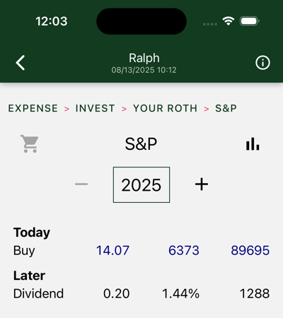 At the top of the screen, you see you are holding multiple lots of S&P. At the top is your original 14.07 S&Ps. Following you see reinvested dividends for nine years.