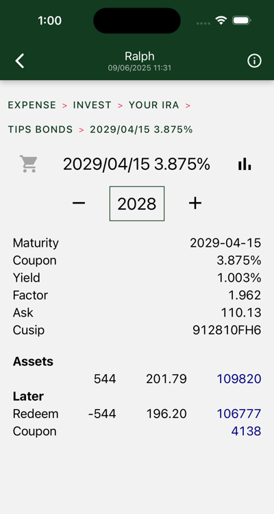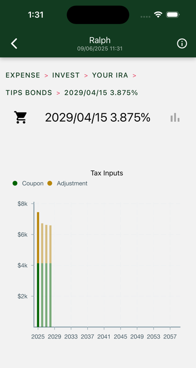 The coupons are in today’s dollars. Your adjustments will vary. If the bond is held in a broker account you will have to pay taxes on both coupons and adjustments. These adjustments are estimates from yield curve data of future inflation rates.