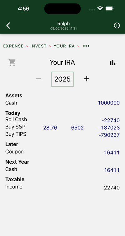 Day zero activities include setting up your TIPS bond ladder. Listed here are the purchases for your IRA account. Your job: